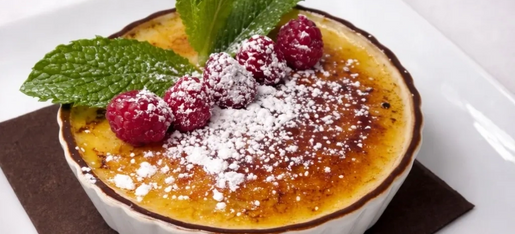 Decadent vanilla bean custard with caramelized sugar crust. Served with